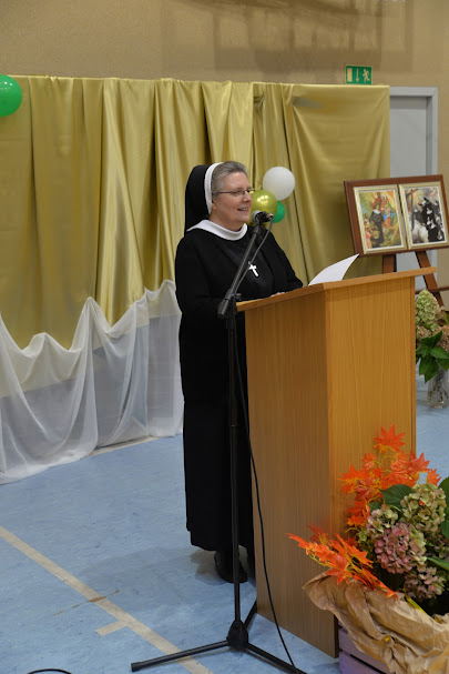 Po niej słowa przywitania wygłosiła Siostra Prowincjalna Julitta Tłustowska. Bardzo serdecznie przywitała wszystkie rodziny, a swoje przemówienie rozpoczęła słowami: „Już w pierwszych Konstytucjach Zgromadzenia z 1887 roku – Matka Założycielka – wyraziła głębokie przekonanie, że osoby świeckie mają swoje miejsce w misji Sióstr Nazaretanek. Pisała: ‘Podobnie jak Pan Jezus, który jako Bóg wszechmocny nikogo wprawdzie do dokonania dzieła swego nie potrzebował, a jednak wybrał z ludzi tych, których powołał w tym dziele swoim… tak też siostry wezmą do tego dzieła tych, których im Bóg powierzył, także osoby świeckie…’. Te słowa, wypowiedziane ponad sto trzydzieści lat temu, dziś nabierają pełni życia. Stowarzyszenie Najświętszej Rodziny stało się przestrzenią, w której osoby świeckie – małżonkowie, rodzice, młodzież, osoby samotne – mogą wzrastać w duchowości Nazaretu, pogłębiać swoją relację z Bogiem i współuczestniczyć w misji Kościoła. Wspólne spotkania formacyjne, rekolekcje, modlitwa, służba – to wszystko buduje wspólnotę, która jest żywym świadectwem Ewangelii”.