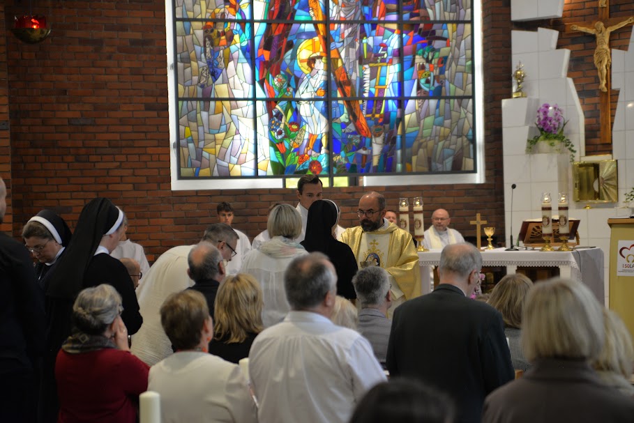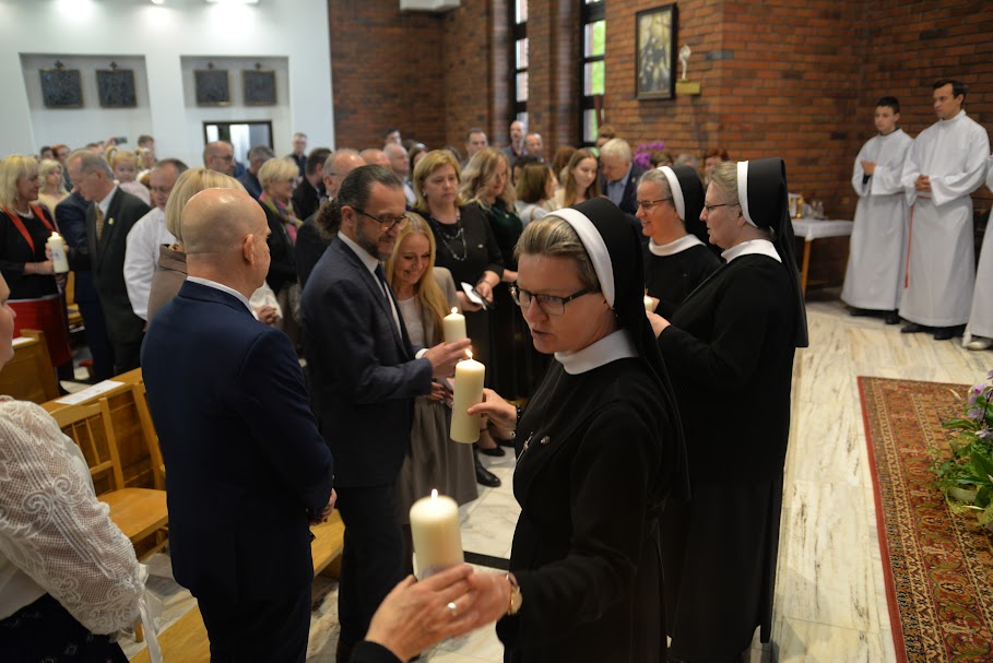 Prezentacja wspólnot była czasem radości i wzruszeń. Każdy prezentujący ukazywał piękno różnorodności wspólnot, co potwierdzały gromkie oklaski dla wszystkich mówców. Po zakończeniu spotkania udaliśmy się do Domu Prowincjalnego na najważniejszą część naszego spotkania, jakim była Eucharystia. Mszy świętej przewodniczył ks. dr Paweł Gałuszka – Dyrektor Wydziału Duszpasterstwa Rodzin Archidiecezji Krakowskiej. W homilii Ks. Dyrektor ukazywał nam piękno Nazaretu oraz wartości życia małżeńsko-rodzinnego. Po homilii członkowie SNR wyszli na środek kaplicy by odnowić przyrzeczenia członkostwa, a po nim wszyscy przyjęli z rąk s. Prowincjalnej Julitty zapalona od świecy SNR – święcę wręczoną ze słowami: „Przyjmijcie tę świecę. Z odwagą szerzcie Królestwo Bożej Miłości w swojej rodzinie i wśród wszystkich rodzin świata. Bądźcie misją Świętej Rodziny, dokądkolwiek Miłość Was poprowadzi”.