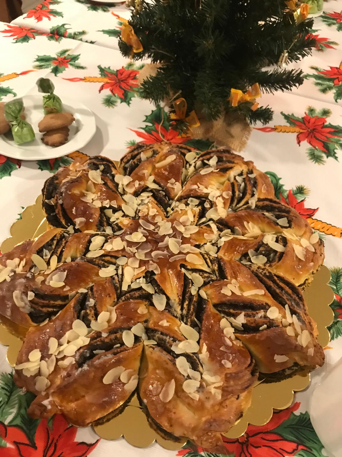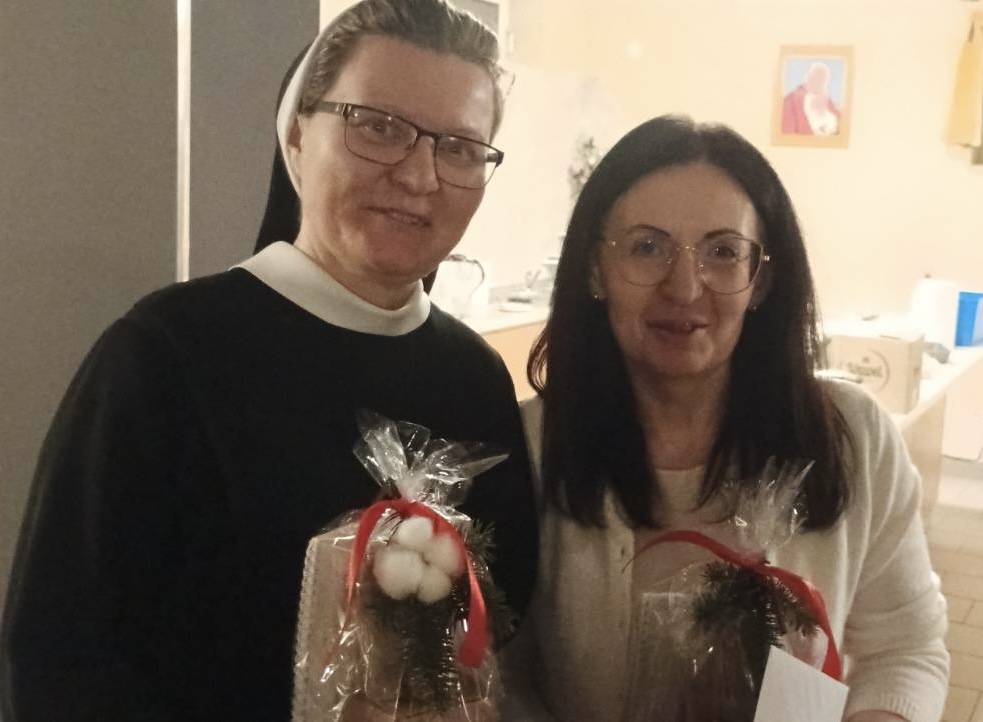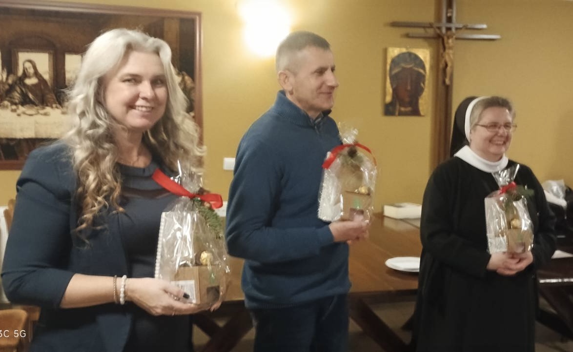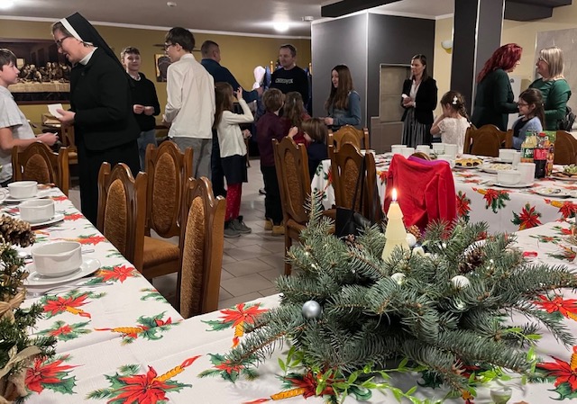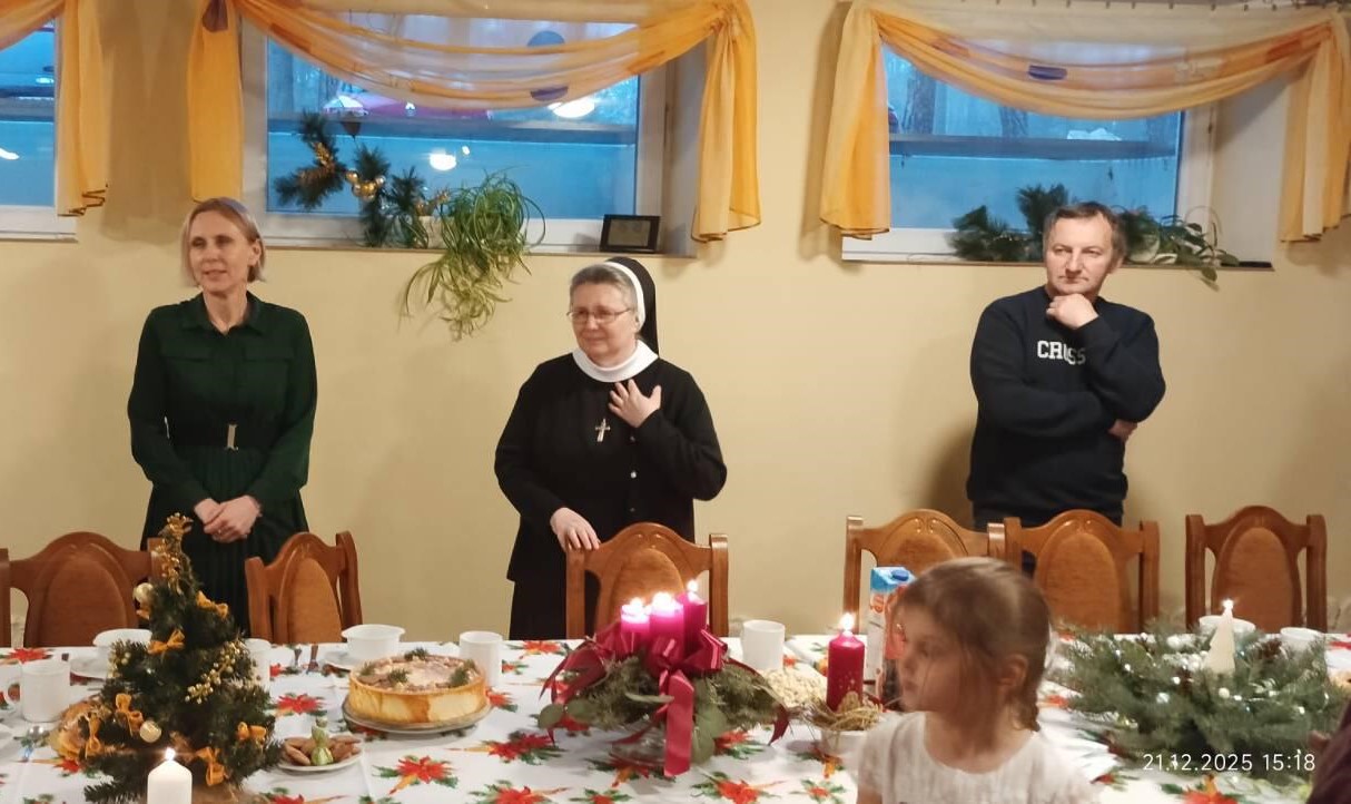 Potem przeszliśmy do jadalni, odczytaliśmy Ewangelie i razem z s. Elżbietą i s. Margeritą – z SNR Częstochowa – modliliśmy się, łamaliśmy opłatkiem oraz kolędowaliśmy ze szczególnym udziałem dzieci. Każda rodzina zadbała, by przynieść na wspólny stół wiele smacznych potraw. Podczas spotkania troje z naszej wspólnoty świętowało swoje grudniowe urodziny, częstując nas pysznym ciastem w tej okazji.