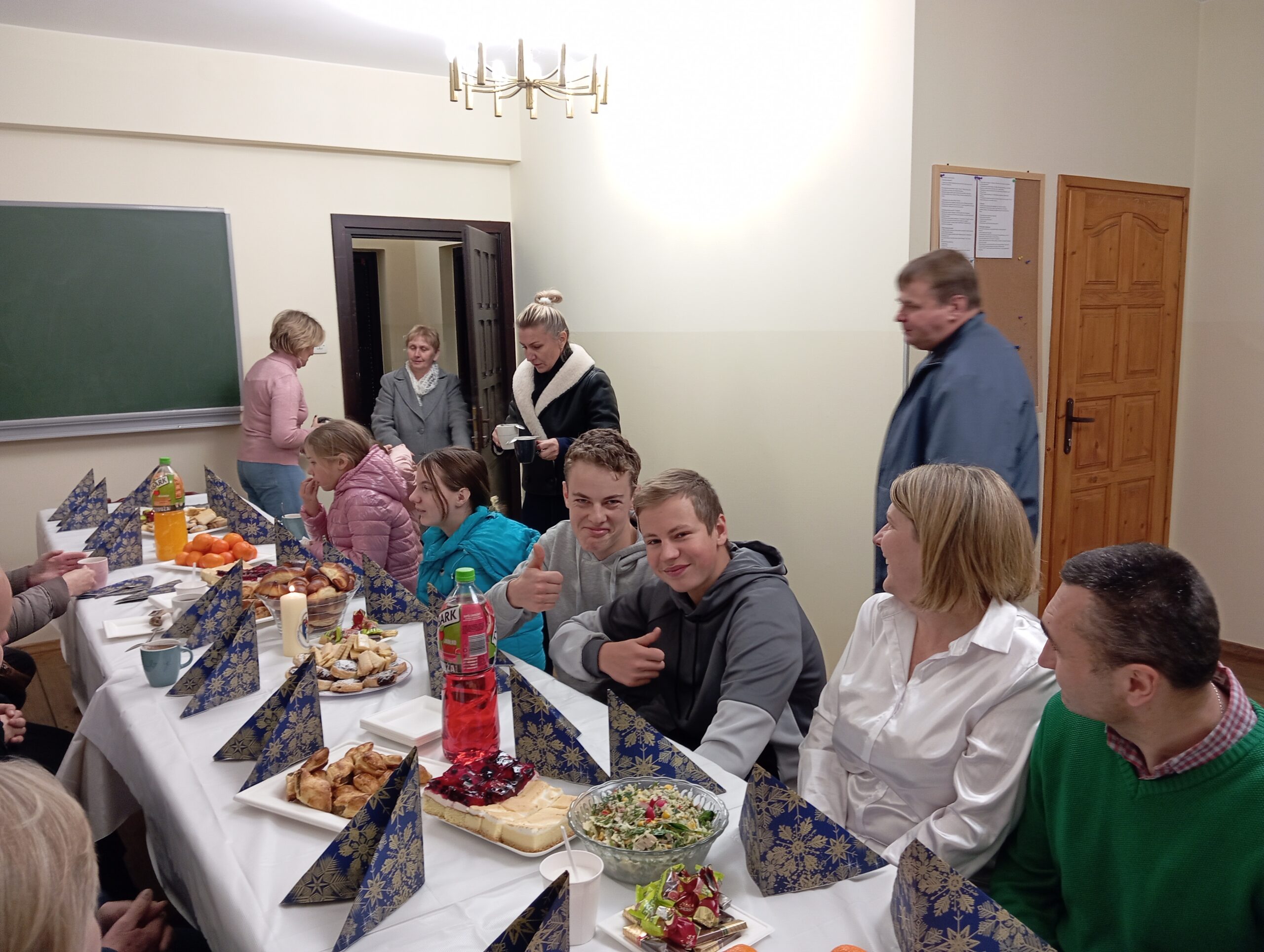 Jako, że to już nasze ostatnie spotkanie w tym roku kalendarzowym, złożyliśmy sobie życzenia, połamaliśmy się opłatkiem, a potem wspólnie ucztowaliśmy. Cieszyliśmy się tym bardziej, że do naszej małej wspólnoty dołączyła s. Izabela.