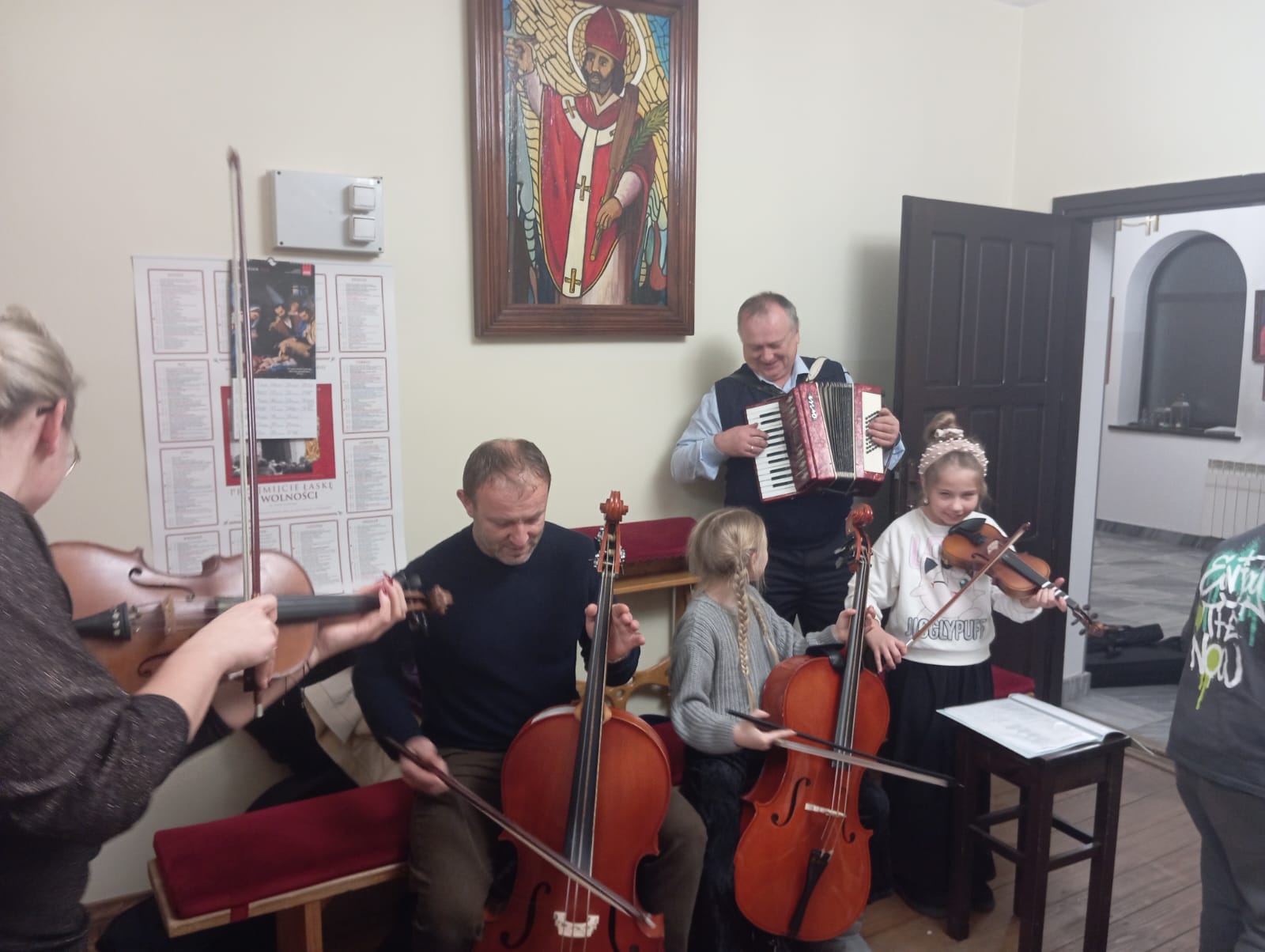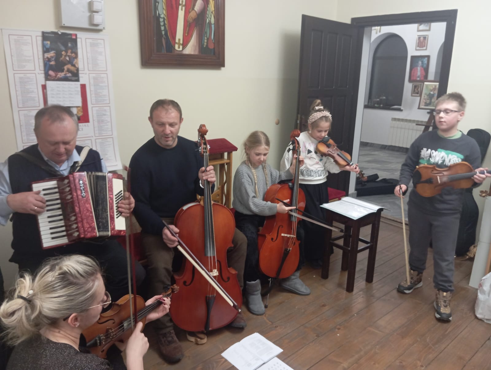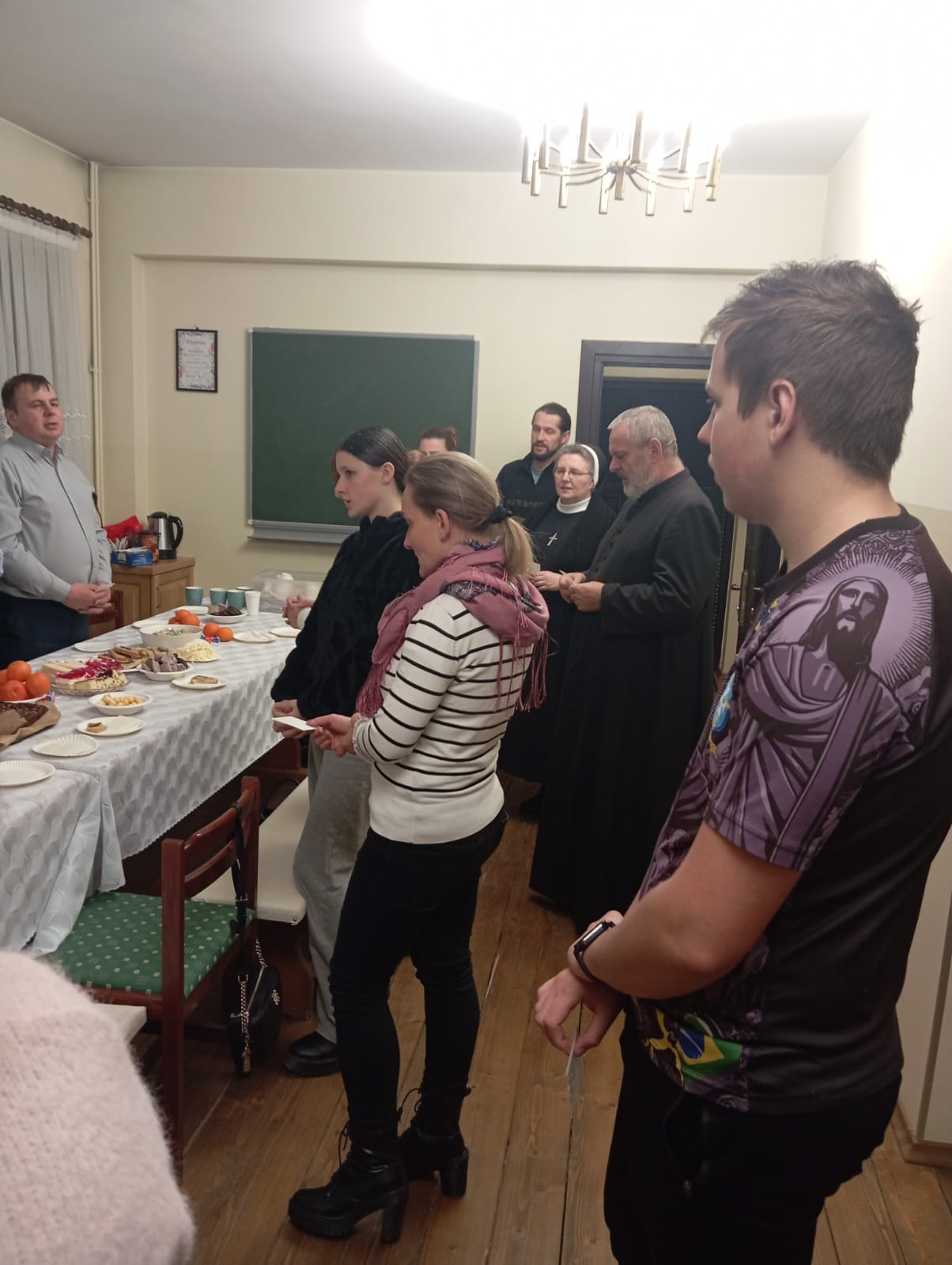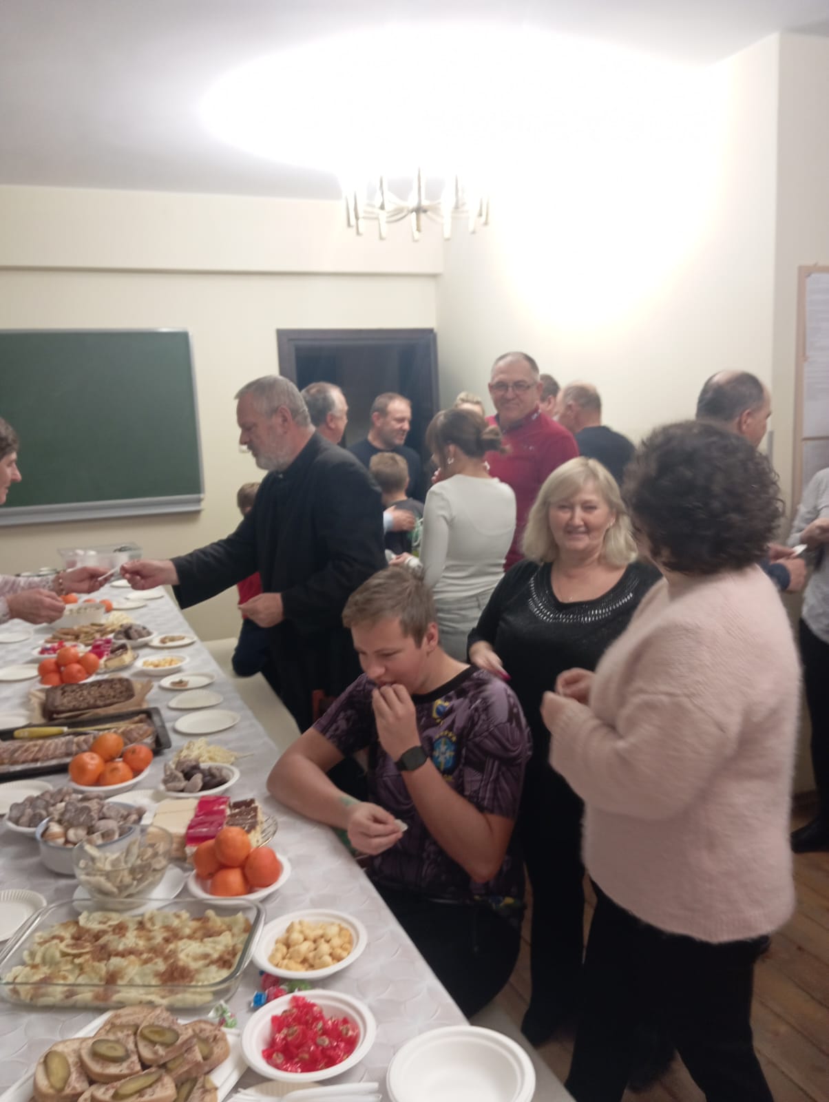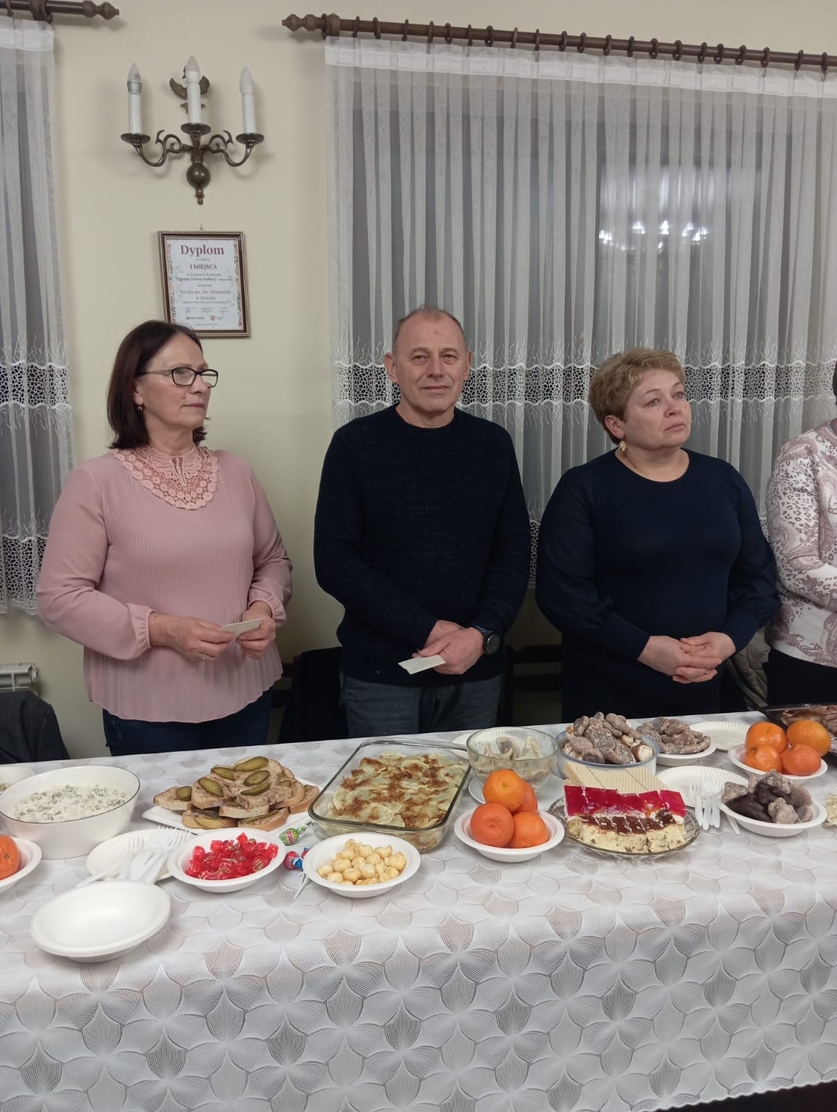 W dalszej części spotkania nastąpiło tradycyjne łamanie się opłatkiem i składanie świątecznych życzeń, co stało się okazją do umocnienia wzajemnych więzi i doświadczenia wspólnoty. Następnie zasiedliśmy do wspólnej wigilii, przeżywanej w serdecznej, rodzinnej atmosferze. Spotkanie zakończyło się wspólnym kolędowaniem, które w radosny sposób dopełniło ten wyjątkowy czas modlitwy i bycia razem. Nawet nie wiedzieliśmy, że wśród naszych członków są takie talenty.