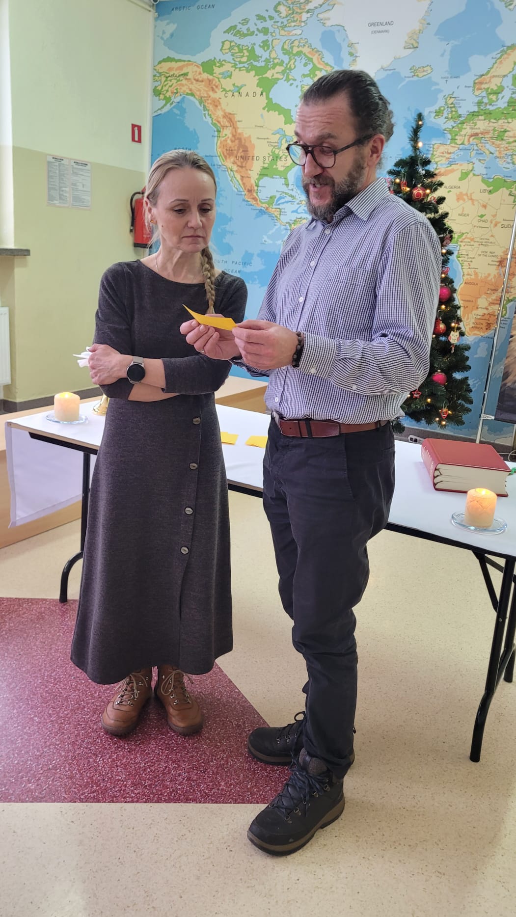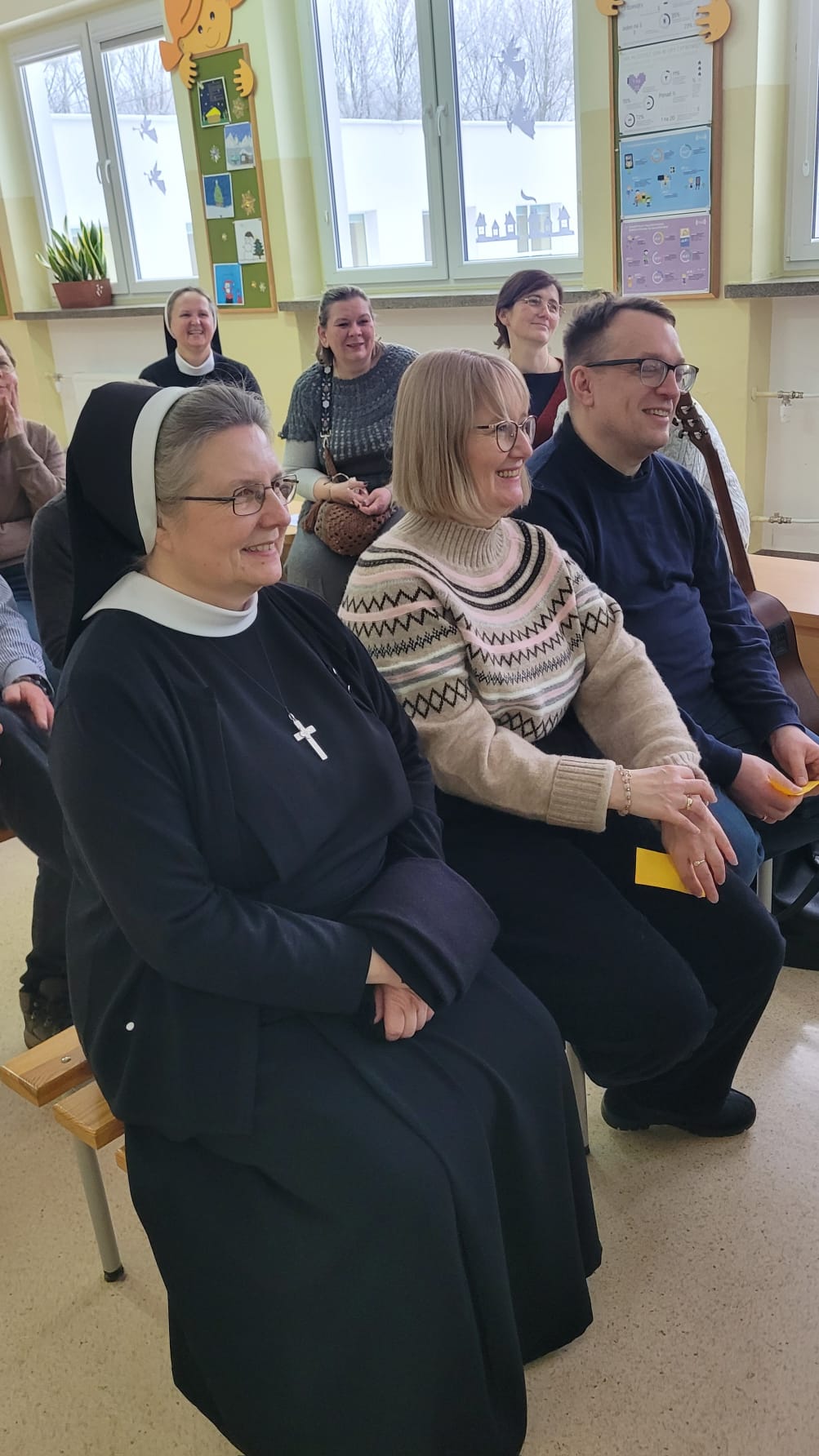 Bezpośrednio po Eucharystii był ważny moment – losowanie Patronów, którzy będą duchowo towarzyszyć każdemu z nas w Nowym Roku 2026. Chwila ta była bardzo radosna i wzmocniła poczucie wspólnoty. Następnie odbyła się wspólna agapa, podczas której przy stole toczyły się serdeczne rozmowy, pełne uśmiechu i otwartości. Był to czas bliskości i dzielenia się doświadczeniami. Gościem styczniowego spotkania była s. Elżbieta Kuczmarska, która poprowadziła dla nas konferencję na temat: “Królestwo Boże a istnienie zła – rozeznawanie duchowe, nawrócenie”. Jej słowa poruszyły nasze serca i stały się inspiracją do refleksji nad życiem w wierze, relacjami i codziennym niesieniem dobra. Całe spotkanie upłynęło w atmosferze radości, wdzięczności i duchowej bliskości, pozostawiając w naszych sercach poczucie jedności i pokoju.